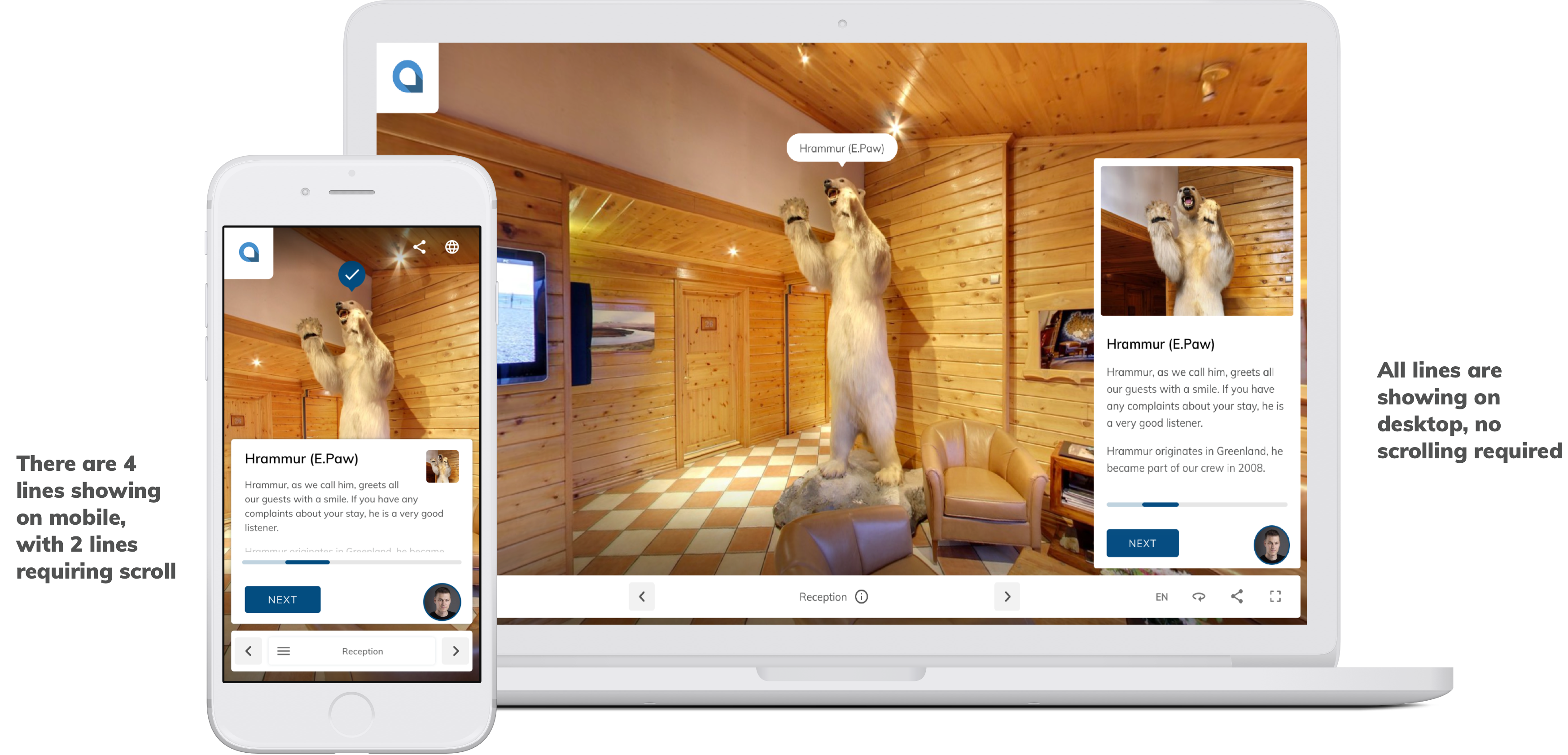 Keep in mind that your audience will likely differ from the sample, and variables like the position of the scene on the tour and type of imagery can cause substantial variance in results. When your tour launches and user data accumulates for 2-3 months, re-evaluate how different text lengths affect user engagement.